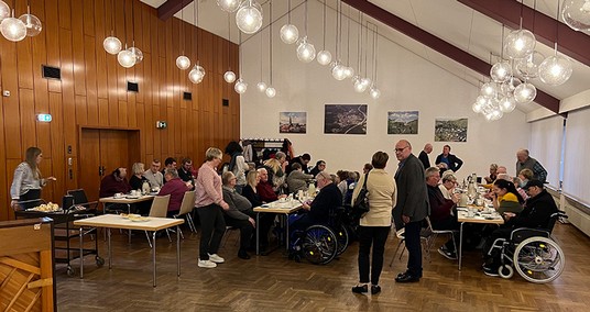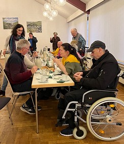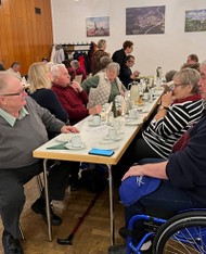 Danach  waren wir alle zu Kaffee, Kuchen sowie von der Rotkreuzlern mit viel  Liebe zubereiteten  Schnittchen eingeladen, die gerne und mit Heißhunger  angenommen wurden. Eine nachdenkliche Weihnachtsgeschichte von Uli  Schlabach und ein Ausblick von Ute Upphoff auf das neue Jahr mit der  geplanten Freizeit in Bad Bevensen, verbunden mit herzlichem Dank an  alle Unterstützer und die Rotkreuzler rundeten die Veranstaltung ab.