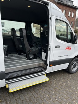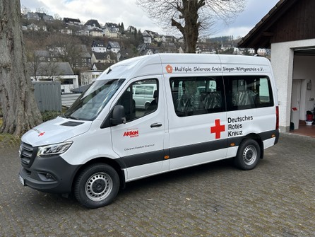 Große Freude beim MS-Kreis Siegen-Wittgenstein. In  den letzten Tagen ist unser neuer Behindertentransporter eingetroffen.  Der Mercedes Sprinter 317 hat insgesamt 4 Rollstuhlplätze und ist auch  innen modern und für die Zwecke von Rollstuhlfahrern ausgestattet. Dazu  gehört ein neues Anschnallsystem für die Rollstühle und die Fahrgäste,  dass die Sicherheit deutlich erhöht. Die Seitentür hat eine Trittstufe  und im Einstieg Griffe zum Festhalten. Variabel können die  Rollstuhlplätze reduziert und entsprechend Sitze eingebaut werden.  Insgesamt verfügt das Fahrzeug über 7 Fahrgastplätze und den  Fahrerplatz. Natürlich hat der Transporter eine Klimaanlage. Er ist mit  einem Automatikgetriebe ausgestattet und verfügt über viele  elektronische Annehmlichkeiten für die Fahrgäste und den Fahrer, bzw.  die Fahrerin.