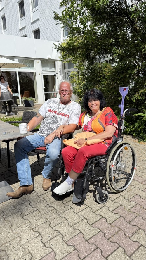 Peter und Katrin waren mit dem LKW vorausgefahren und hatten schon zahlreiche Hilfsmittel, Rollstühle sowie die Koffer zum Hotel gefahren, wo bereits bei unserer Ankunft alle Gepäckstücke auf den Zimmern waren.