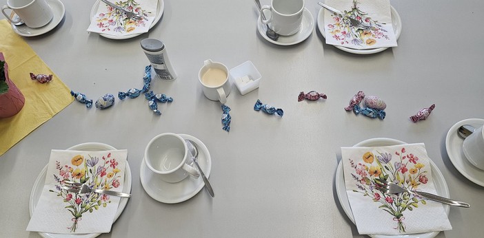 Nach einer weihnachtlichen Geschichte von Ulrich Schlabach folgte das Kaffeetrinken mit viel leckerem Kuchen, Schnittchen und den so wichtigen vielfältigen Gesprächen.